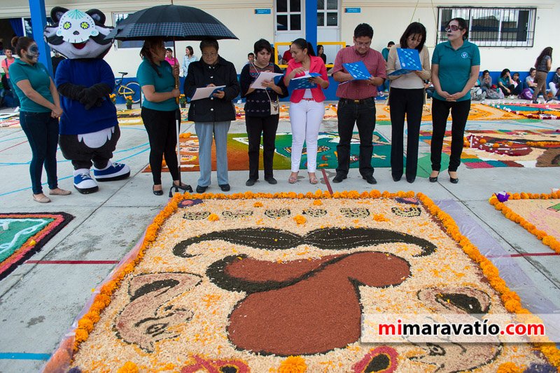 Luego de la instalación de los tapetes la Lic. Jarim Romero, directora del plantel, dio una cálida bienvenida a los presentes así como al jurado calificador integrado por el Prof. Alejandro Ávila, la Lic. Erika Vega; la Prof. María Garfias; la Lic. Laura Amezcua y la Prof. Gloria Orozco Vázquez, presidenta de la asociación civil de UCLA, quienes realizaron el recorrido habitual para admirar cada uno de los tapetes, su creatividad, originalidad y presentación de los participantes, respecto a los elementos del tributo a los fieles difuntos y para así poder emitir el veredicto y realizar la premiación.
